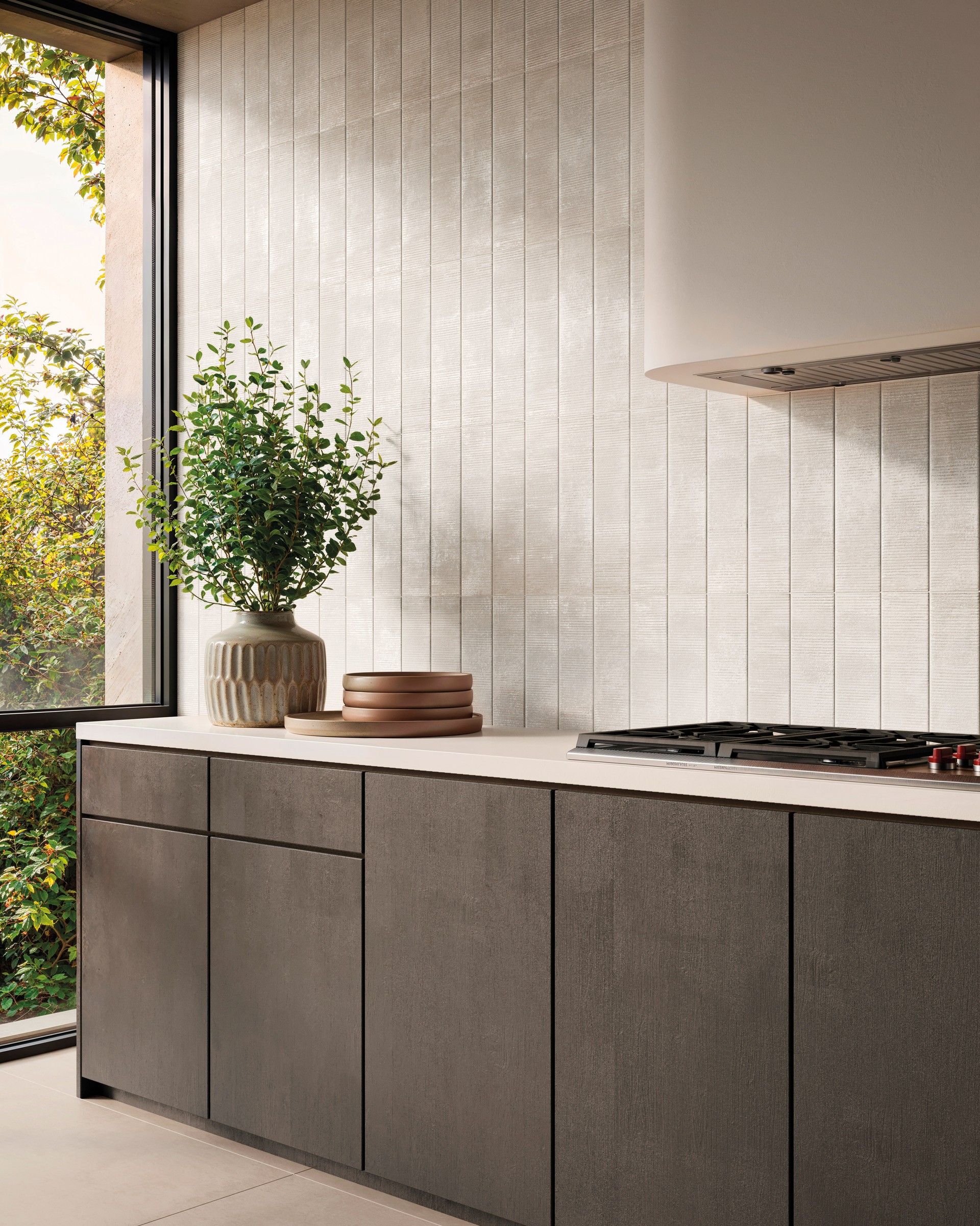 The Metallic Aura collection channels the raw energy of urban design with the bold sophistication of metal-inspired surfaces. Offered in a 4″ x 16″ format with smooth and relief finishes, its Lunar, Pewter, Iron, and Copper tones create dynamic walls that play with light and shadow, bringing depth and modern character to any space.