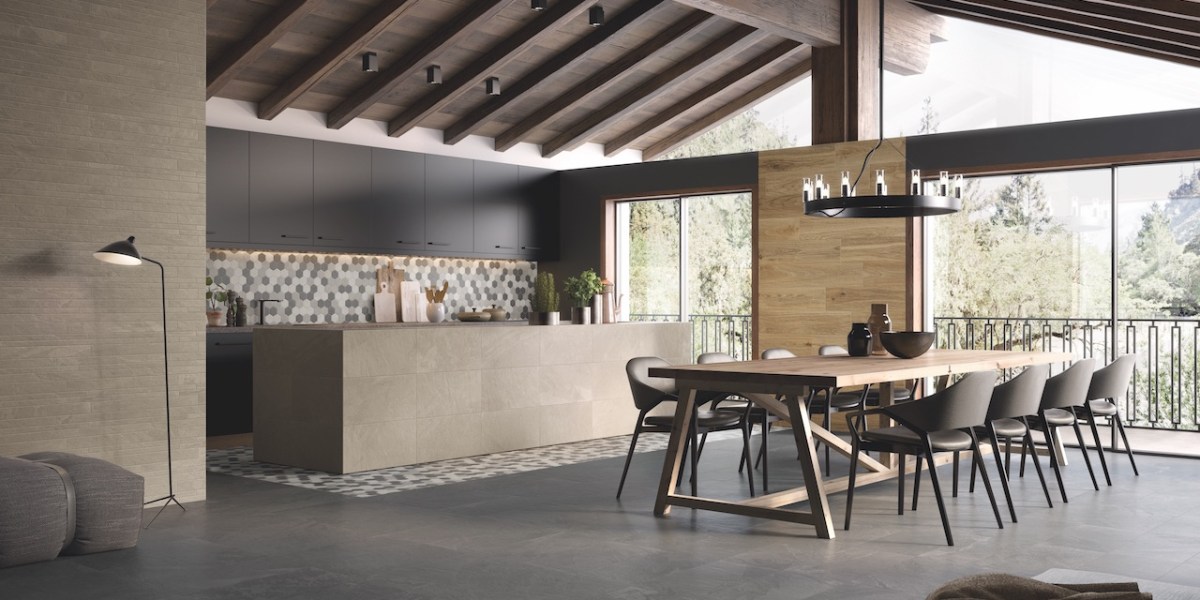 Traditional architecture is the inspiration for a collection of porcelain stoneware with a slate effect, offering again the timeless beauty of the graphics based on the structure of cleft slate. Intense colors and natural surface finishes provide contemporary private and public spaces with the charm of past architectural styles and a new contemporary character.